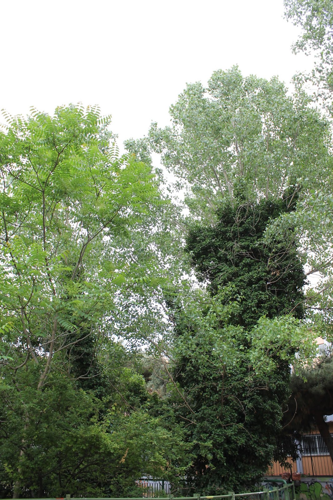 plane trees, poplars, acacias, most of them wrapped in ivy, sour orange trees, a couple of fig trees, a pomegranate tree,