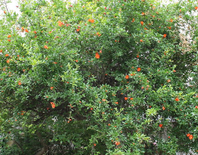 plane trees, poplars, acacias, most of them wrapped in ivy, sour orange trees, a couple of fig trees, a pomegranate tree,